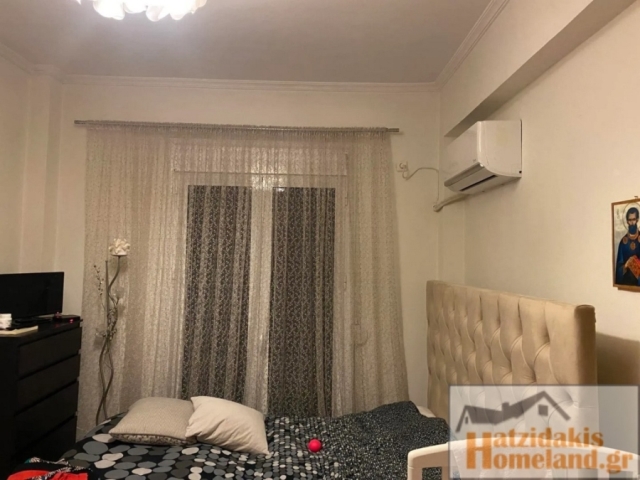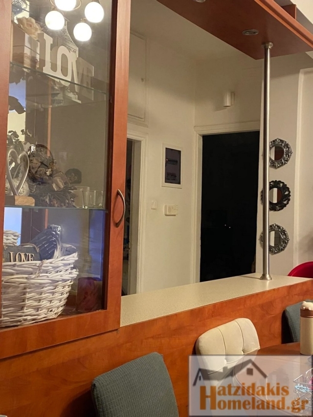 Renovated corner apartment on the 1st floor, bright, near Agios Nikolaos, with an open-plan kitchen with living room, 2 bedrooms and a bathroom, security door, double glazing and screens.