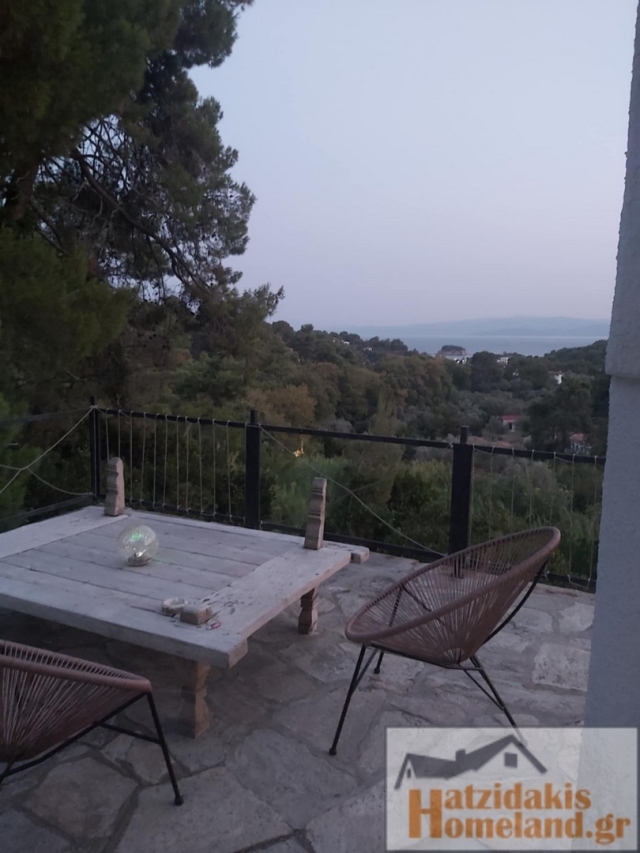 Sporades-Skiathos, Troullos, Detached house For Rent, 175 sq.m., In Plot 15000 sq.m., Property Status: Good, Floor: 1rst, 4 Bedrooms 3 Bathroom(s), Building Year: 1980, Energy Certificate: G, 1 parking(s), Features: Fireplace, Electric Appliances, Internal Staircase, Balconies, Furnished, Airy, Bright, Back yard (Garden), . Detached house of 175m2 on the 1st floor (roofed below), fully furnished, on a plot of 15 acres, with a terrace and unlimited views, 700m from the sea, with an open-plan kitchen with a large living room with fireplace, 4 bedrooms and 3 bathrooms, with a private road, available for short-term rental: from 7 to 29 June, 25 July to 15 August and 14 September onwards, at 400€ per day. See more properties on our website www.homeland.gr. HOMELAND PIRAEUS, Tel: 2104225005, email: info@e-hatzidakis.gr